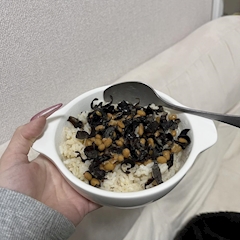 今日のごはん🍚最近キクラゲどはまりしてるからキクラゲ納豆ごはん!!!おいしかった、、( ;ᗜ; )🩷🙏🏻けど食べてたら出勤準備ぎりぎり急ぎます😶