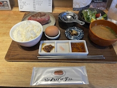 おはよー☀️PiNKのじゅんです👩🏻🦰🤍ブログ見ていただきありがとうございます👀💕自分で鉄板で焼く系のハンバーグおいしい🤤肉感すごくてもう1個くらい余裕で食べれそうでした🐮