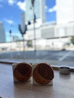 みあです🤍午前もお疲れ様です"(∩>ω<∩)"今更だけど初めて10円パン食べました😂まだ10円パンあるんだ!?とビックリして食べてみた😀1つで満足感凄い!チーズたっぷりりり~~🧀🤍🤍