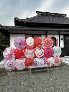おはよー☀️PiNKのじゅんです👩🏻🦰🤍ブログ見ていただきありがとうございます👀💕静岡で行ったお寺にあった和傘❣️ピンクで可愛かったです🩷映えスポット📷💕