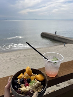 みあです🤍午前もお疲れ様です( ´ ` *)ここのアサイーボウル大好き🥣🤍目の前が海で、最高な景色見ながらアサイー食べれるなんて幸せ( ´˘` )💞🤍