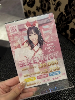 こんばんは~🌙pinkのななです(*^^*)今日出勤してます!🩷ྀི巫女イベントやってるからみんな来てね💕︎開運ドリンク飲んで開運しよ!✨ぜひ待ってます🎶