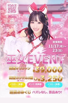 こんばんは~今日から巫女さんイベントです✨20時から出勤してます✨ おみくじとかもあるので是非来てください(o^^o)