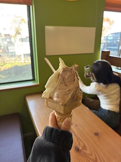 おはようです☀️ピンクのゆみです🙂↕️💖昨日に引き続き今日もポカポカ!お昼寝日和やね🫶🏻昨日食べたジェラート💕