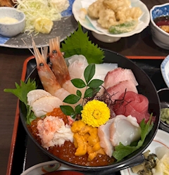 みあです🤍今日もお疲れ様です🙂↕️海鮮丼食べたよ🐟幸せ丼です~🫧🤍土曜日~!たくさん飲みましょう~!!