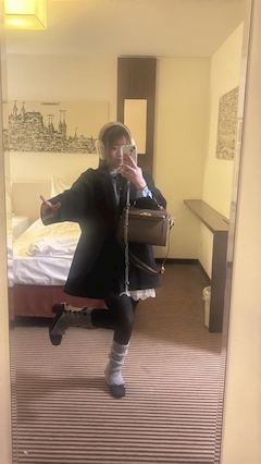 こんばんは🌛桃城あいです🩷この上着お気に入りなの暖かくてかわいい💕いつもふわふわ系だからちょっとかっこいいの着てみたよ✨