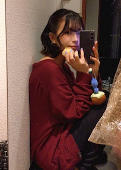 こんちゃ!PINKのほのです🐈⬛ いつもブログ見てくださりありがとうございます🫧 昼から3コマ分実習なう^^ 人生初鬼まんじゅういただきまーす🙃