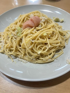 こんばんは🎶桃城あいです🐰💕最近ずっとおやすみだからお昼ご飯作るのはまってる最近作ったこのパスタが美味しすぎたの🥺明太子としらす大優勝🏆✨️