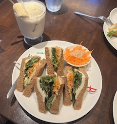 みさです🐰ྀི🤍🤍お昼にカフェでサンドイッチ食べました🥪✨何度か来たことあるので、お気に入りの明太モッツァレラを❕安定に美味しすぎて感動🥹💕それとバナナジュース大好きまんなので飲めて嬉しすぎたー!